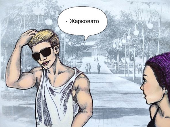 – Жарковато. – коротко и ясно. Макс встряхнул головой, пытаясь убрать волосы со лба, что без его разрешения посмели выбиться из стаи, но они не послушались. Далее, как в каком-то рекламном ролике шампуня, он сделал это рукой, слегка наклонив голову вниз.