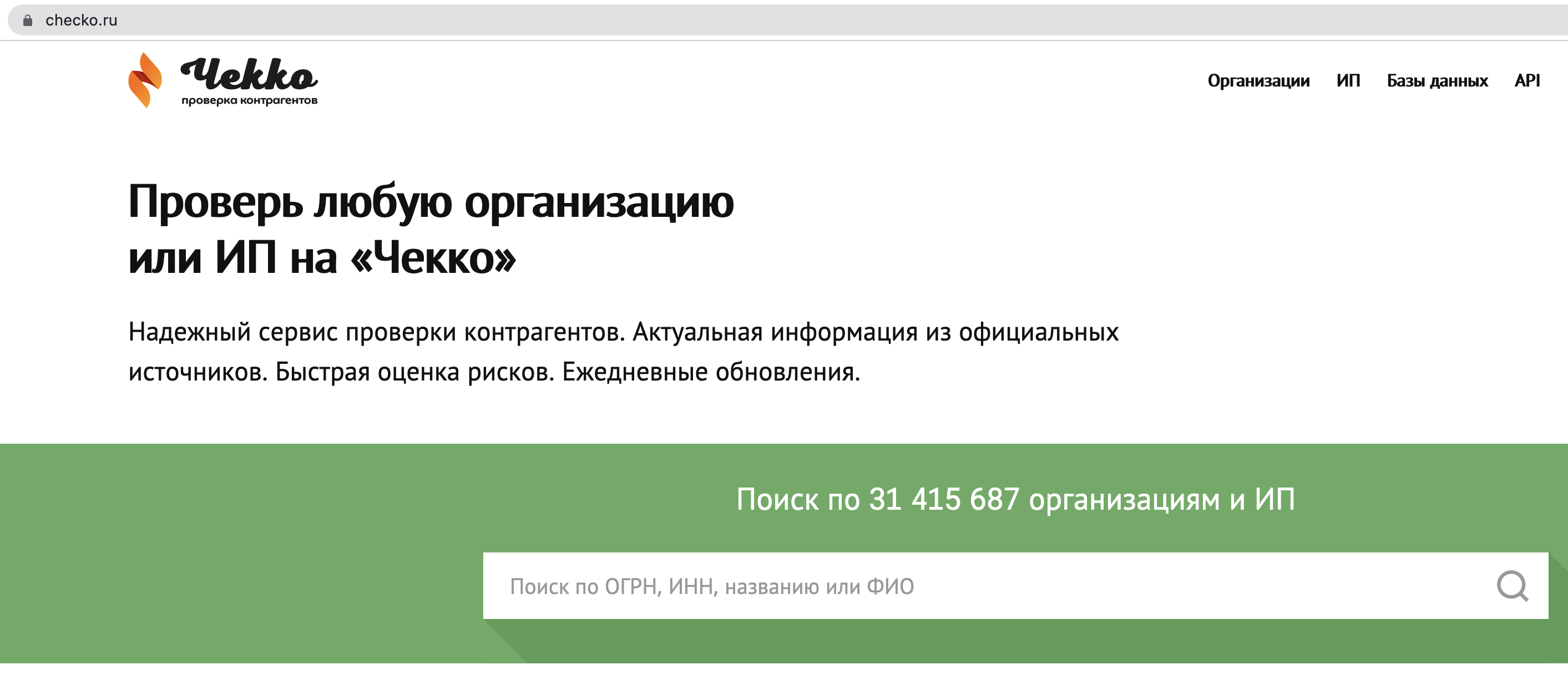 Рис. 11. Интерфейс сервиса проверки контрагентов «Чекко»