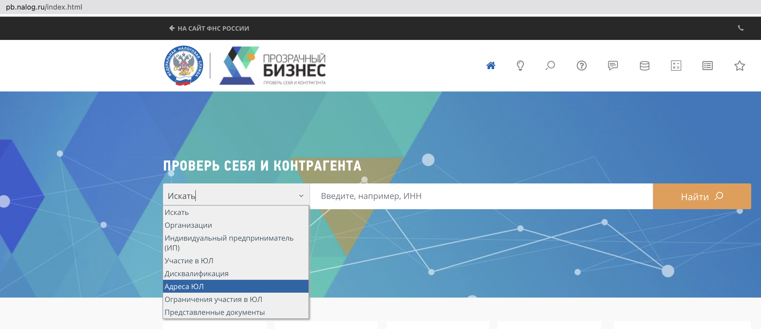 Каким образом: в разделе «Адреса ЮЛ» сервиса проверки контрагентов ФНС России «Прозрачный бизнес» на портале https://pb.nalog.ru/.