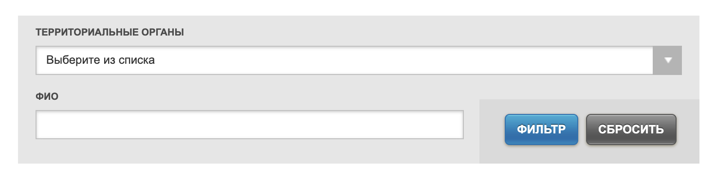 Поиск состоит из двух полей – территориального органа управления службы по субъекту и Ф. И. О., но достаточно указать только фамилию (рис. 5).