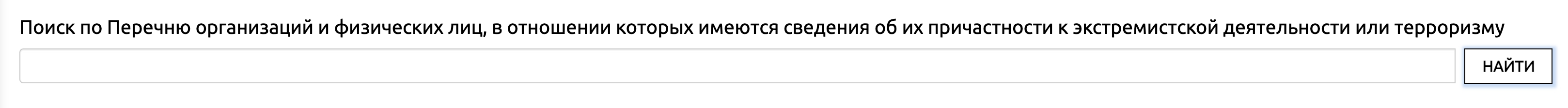 Сервис Росфинмониторинга «Перечень организаций и физических лиц, в отношении которых имеются сведения об их причастности к экстремистской деятельности и терроризму»