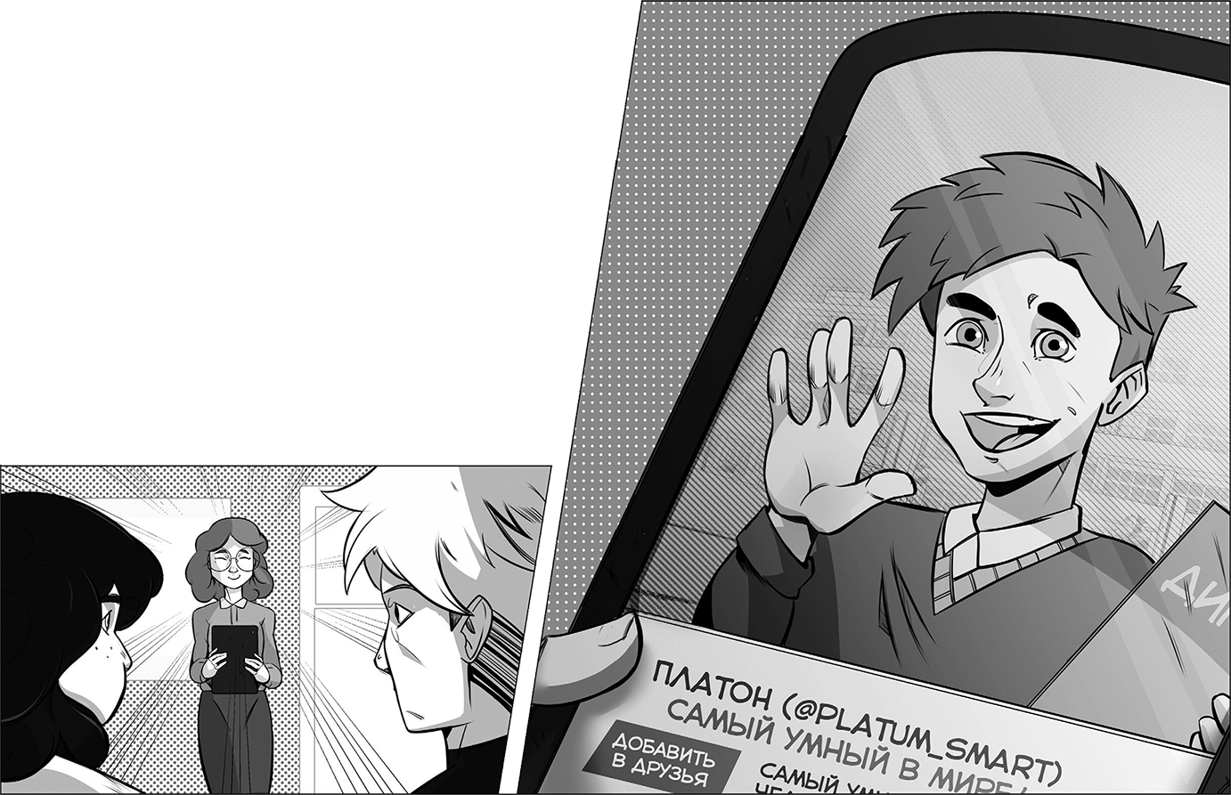 Новости, фотографии, разные рожицы мелькали перед глазами. Вдруг Юра почувствовал, что не может оторваться от экрана: он пытался перевести взгляд на учебник математики, но лента притягивала с невероятной силой и наконец затянула Юру.