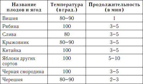 Перед варкой варенья из яблок, груш и некоторых других плодов желательно применить процесс бланшировки (обваривания). Это позволит плодам лучше пропитаться сиропом и сохранить форму во время варки. Особенности проведения бланшировки для тех или иных видов сырья даны в табл. 1.