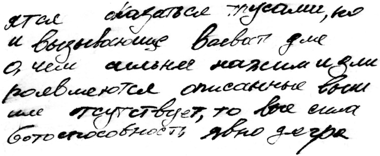 Этот образец (рис. 4) станет хорошим примером того, что почерк писавшего не выдает его возраст. Почерк выглядит так, словно его обладателем является 16-летний подросток, в действительности же писавшему 35 лет.