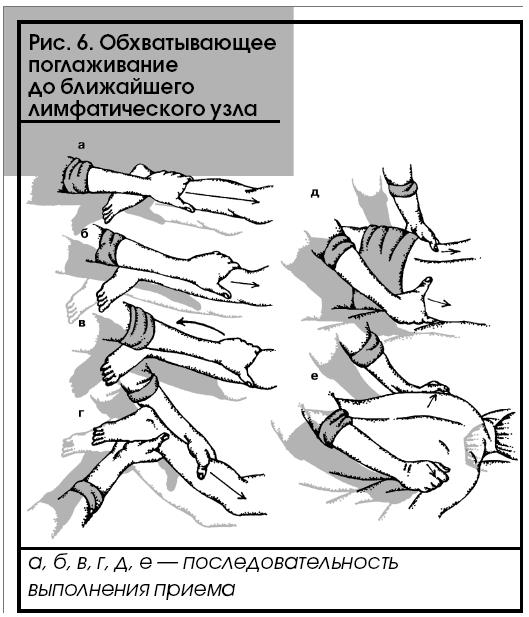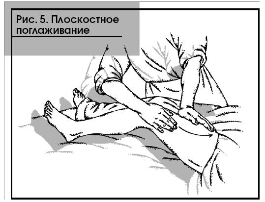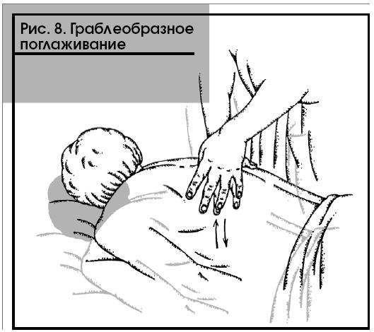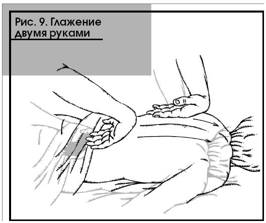 Вначале используют поверхностное поглаживание, затем глубокое.