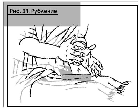 Рубление – вспомогательный прием, который выполняется локтевыми краями кистей, ладони при этом располагают на расстоянии 2–4 см друг от друга (рис. 31). Движения быстрые, ритмичные, вдоль мышц.