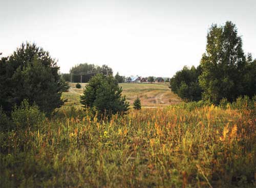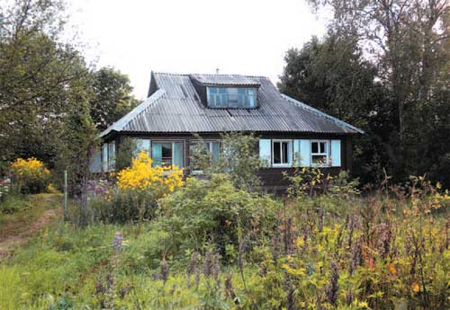 «Двор» представлял собой наполовину рухнувший сарай впритык к дому, в котором располагался туалет с выгребной ямой. Бани не было. До берега озера метров сто, сильно под горку. У дома огромный, наверное, двухсотлетний дуб. Прямо за домом проходит задняя «изгорода» деревни и начинаются кусты и поля, поля и кусты. В первые годы нашего пребывания в Булавино в полях еще сеяли лен, потом пошел один овес, потом поля забросили совсем, и сейчас там молодая тайга: как я уже говорила, полная победа природы над человеком.