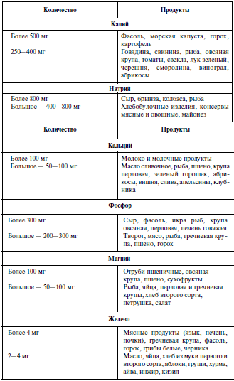 Таблица 12. Содержание отдельных макро– и микроэлементов в 100 г продуктов