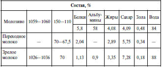 В первое время после окончания беременности молочная железа выделяет своеобразный по своему морфологическому составу секрет, называемый молозивом. Это густая жидкость желтого цвета с высоким удельным весом. Молозиво является наиболее ценным питанием для новорожденного в первые дни жизни, когда происходит адаптация ребенка к условиям внешней среды. Молозиво содержит мало жидкости, оно предохраняет почки ребенка от появившейся нагрузки. Молозиво, обладая слабительными свойствами, помогает ребенку освободить организм от первородного кала – мекония, предотвращает появление у ребенка физиологической желтухи.