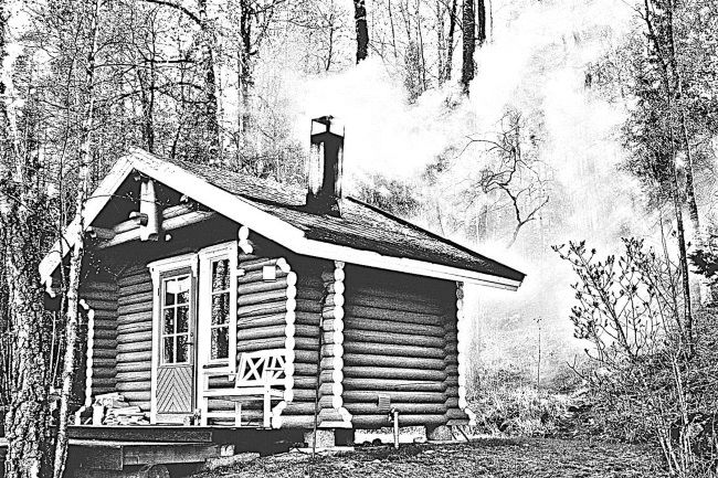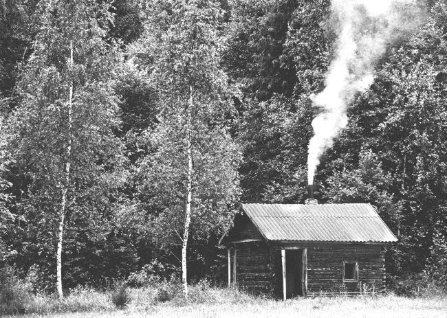 Бездымная баня, или баня по-белому, отличается от черной только наличием трубы. Дым не циркулирует свободно по всему помещению, а выходит через трубу наружу.