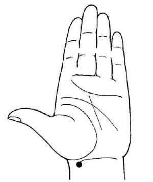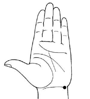 1. Локализация точки: находится на ладонной поверхности запястья (со стороны большого пальца) под нижней складкой, отступя от нее 1,5 см вниз, там, где определяется пульс.