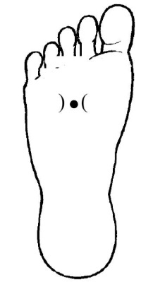 4. Локализация точек: симметричные, находятся на подошвенной поверхности стопы в ямке, которая образуется при сгибании пальцев.