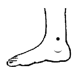 6. Локализация точки: на внутренней боковой стороне икроножной мышцы, на расстоянии примерно в 4 ширины пальца вверх от внутренней лодыжки и позади большеберцовой кости.