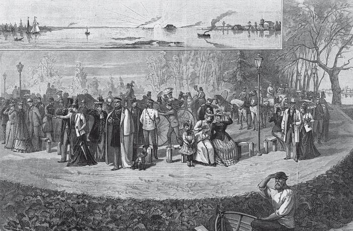 А примерно 150 лет назад здесь устраивались рождественские елки, дети катались на пони, а взрослые – на лошадях и оленях. Особым великолепием отличались фейерверки и иллюминации в дни тезоименитства в императорском семействе или рождения наследника российского престола. На пароходах «Невской флотилии» катались по рекам, каналам, Финскому заливу. Духовая музыка в Крестовском саду, выступления акробатов и цыганского хора, чудеса кухни в Немецком трактире – все это конечно же отличалось от чопорных развлечений каменноостровцев на спектаклях в Летнем театре. Но особой границы между ними не было, скорее система перетекающих парковых пространств, взаимно дополняя друг друга, сообщала жизни на Островах поэтическо-меланхолический оттенок.