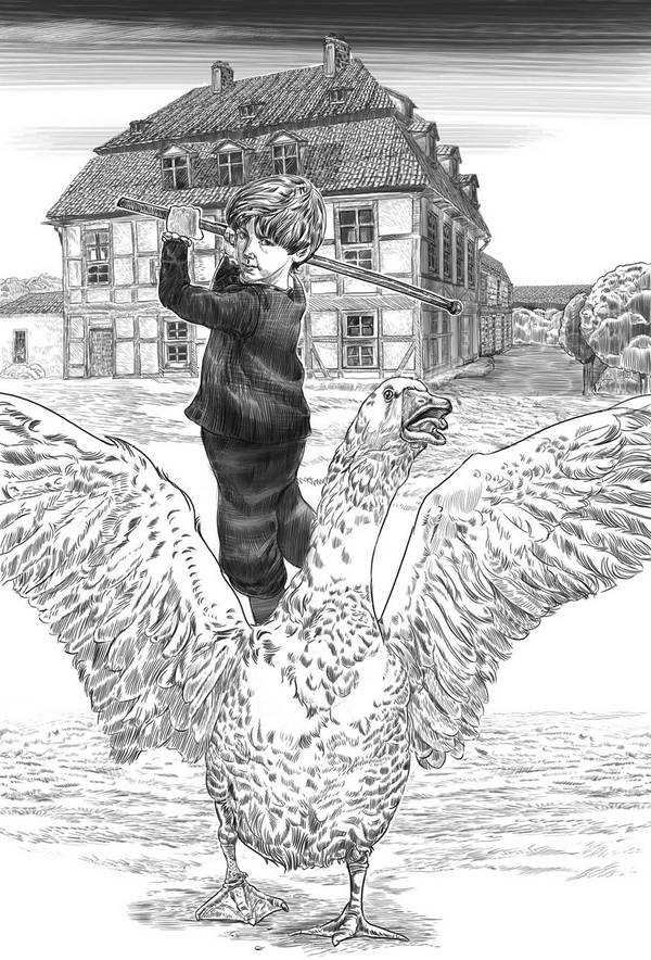 Так и случилось. Как только мы открыли ворота во двор, навстречу, вытянув шею и свирепо шипя, бросился гусь. Сестра моя, вскрикнув, попыталась бежать, и у меня, признаться, возник огромный соблазн последовать ее примеру, но я доверился советам отца и пошел навстречу чудищу, хоть и с закрытыми глазами, но смело размахивая перед собой палкой. И надо же, теперь уже сам гусь испугался и с громким гоготом поспешил к стае остальных, также разбегавшихся кто куда сотоварищей.