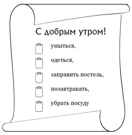 Этот план можно проиллюстрировать и оформить на видном месте в виде чек-листа, тогда ребенок будет постепенно понимать, что утром происходит, и учиться действовать по алгоритму (рис. 6).