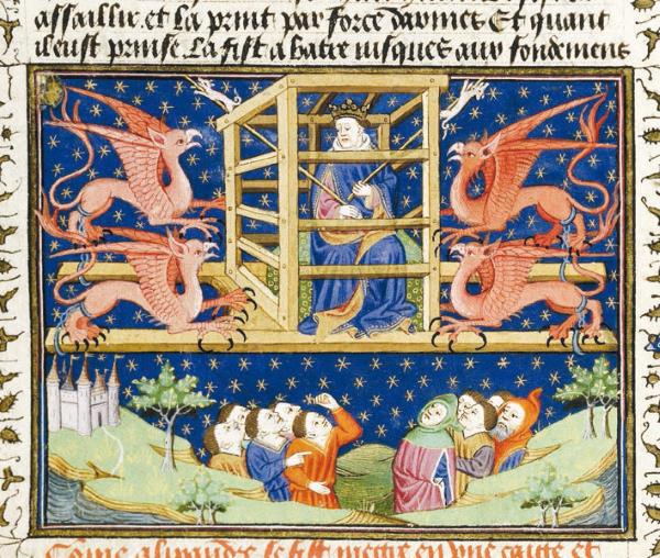 Миниатюра из книги «История об Александре», Франция, сер. XV в. (British Library: Royal 15 E VI, fol. 20v).
