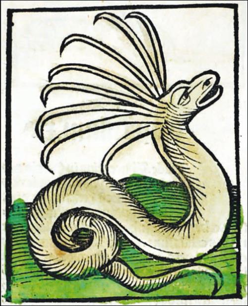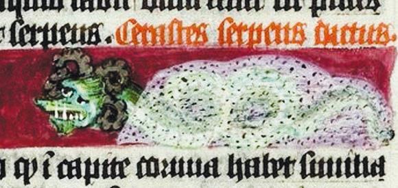В средневековых бестиариях можно встретить огромное разнообразие пресмыкающихся и в особенности ползучих гадов: например, змей с огромными рогами (так называемые «керасты»), двуголовых змей (амфисбены) или змей с четырьмя лапами (наличие лап у змей встречается особенно часто). И хотя эти представители фауны не являются в строгом смысле слова монстрами, на миниатюрах, украшающих средневековые манускрипты, они нередко принимают по-настоящему чудовищный вид. Приведем в качестве примера кераста (или кёрату).