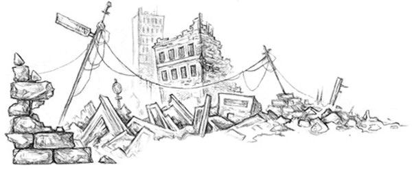 Тяжелые чувства тем временем продолжали одолевать меня, и вид заброшенных зданий с явными следами разрушения лишь усугублял мрачное настроение.