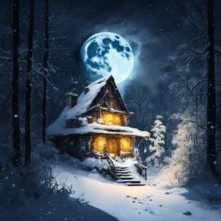 "Ах, как же красиво! " – прошептала Агнес, садясь на метлу и толчком от земли оторвалась от земли. Вихрь успокоился и теперь было слышно, как трещат веточки под тяжестью снега, а луна блестит серебром на снежном покрывале.