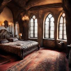 Вылетев за опушку леса, ведьма замерла над рекой, которая разделяла лес и замок. Он казался могущественной горой освещенной бледным светом луны. В дали, за замком, виднелось поле, а за ним лес-все угодья Гариндов. Перед замком виднелся большой сад, состоящий не только из роз, но и кустарников, скамеечек и красивого фонтана, но все было укутанного толстым покрывалом серебра. За замком была конюшня, Гаринды любили конные прогулки и не отказывали себе в них даже зимой. Сейчас там блекло мерцал огонь, ходили тени конюхов, заботливо следившие за своими подопечными. По правде сказать, к животным тут относились с заботой.