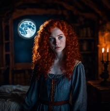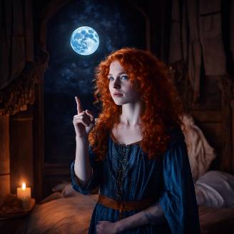 Юная ведьма обладала редким даром: ее красно-рыжие волосы и веснушки гармонично сочетались с ее огненным даром, а голубые глаза уносили с собой в глубокий невод.