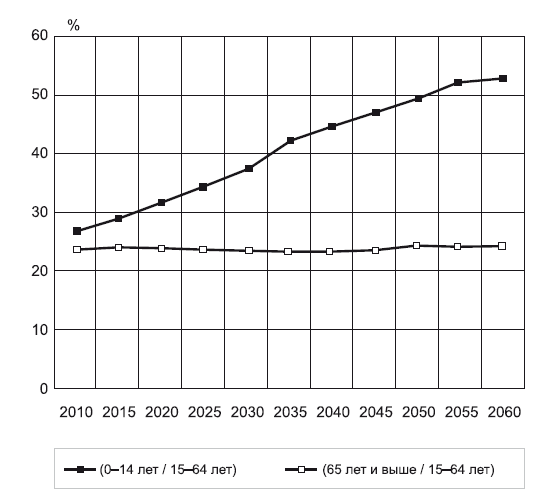 Прогресс в области медицинских технологий, улучшение здравоохранения и питания, повышение уровня санитарно-гигиенической культуры людей и другие факторы растущего качества жизни стали в последние десятилетия причиной значительного снижения показателя преждевременной смертности и роста продолжительности жизни населения во многих развитых странах мира. Средняя продолжительность жизни в них в настоящее время составляет около 80 лет и с 1900 г. увеличилась примерно на 25–30 лет. Расчеты показывают, что если в 2020 г. только в четырех ведущих странах мира доля людей старше 65 лет превысит 20 %, то к 2060 г. в большинстве стран она достигнет 30 %. Что касается стран Европейского Союза, то если в 2008 г. отношение численности населения в возрасте от 0 до 14 лет и старше 65 лет к количеству людей трудоспособного возраста (от 15 до 64 лет) в них составляло 23,3 и 25,4 %, то уже к 2060 г., по предварительным прогнозам, оно достигнет соответственно 25,0 и 53,5 % [81].