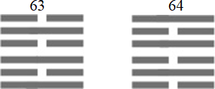 Гексаграмма 63 переходит в гексаграмму 64, а 64 переходит в 63: