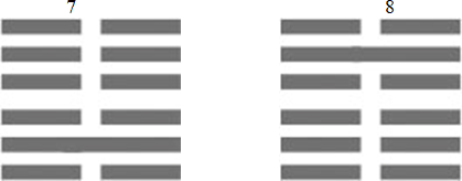 Непонимание Книги Перемен, как правило, происходит при различном толковании значения одинаковых черт, одинаково расположенных в разных гексаграммах. Для примера рассмотрим толкование черт гексаграмм 7 и 8.