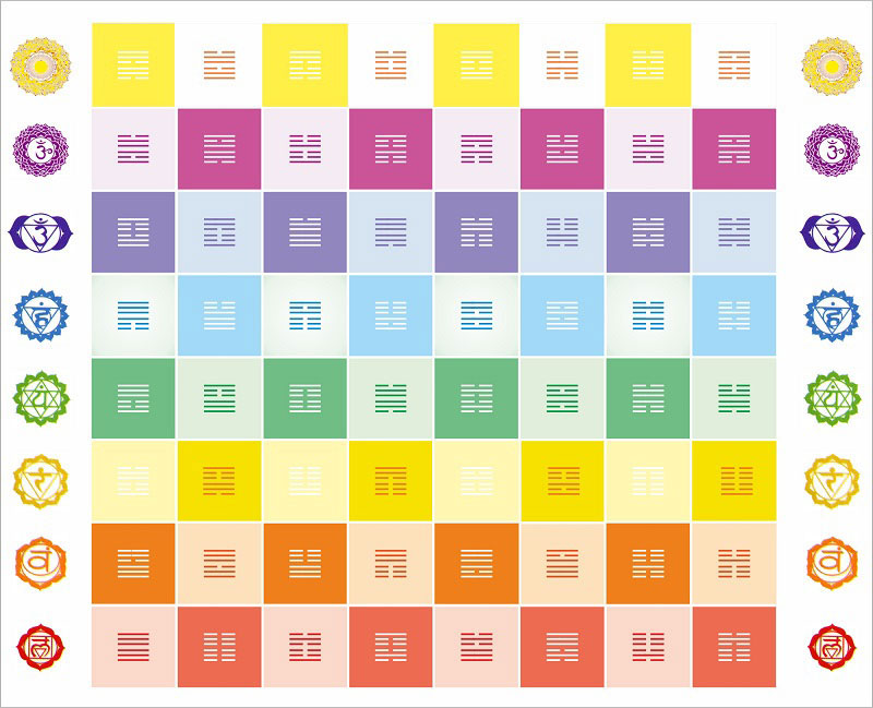 Отметим что у нечетных гексаграмм в большинстве случаев более проявлена мужская вибрация Ян, а у четных – женская Инь. Вначале это проявлено очень резко: гексаграмма 1 – «Мощь Ян», гексаграмма 2 – «Сила Инь». Затем различие ослабевает, но не исчезает совсем по мере увеличения номеров гексаграмм. В популярных играх «Лила чакра» и «Код Крайона», основанных на 64 гексаграммах Книги Перемен, соседние клетки поля игры отличаются по насыщенности цвета. Из-за этого поле игры напоминает шахматную доску.