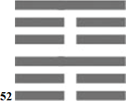 Гексаграмма 52 называется «Медитация». В проявленном мире две одинаковых триграммы «Гора». Это незыблемое спокойное пребывание и в прошлом и в будущем на проявленном уровне, несмотря на всю изменчивость нашей реальности. Чэн И-чуань, крупнейший сунский философ, сказал, что человек понявший суть 52 гексаграммы, тем самым уже понял всю суть Буддизма.