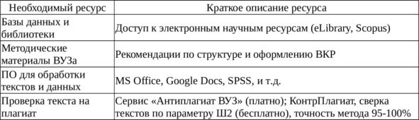 Таблица 3 – Минимально необходимые ресурсы для написания ВКР