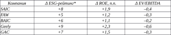 Таблица 4 иллюстрирует позитивное смещение рыночных мультипликаторов на фоне роста ESG-рейтинга.