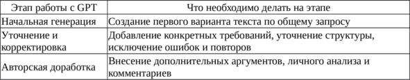 Таблица 11 – Этапы работы с GPT для повышения качества текста
