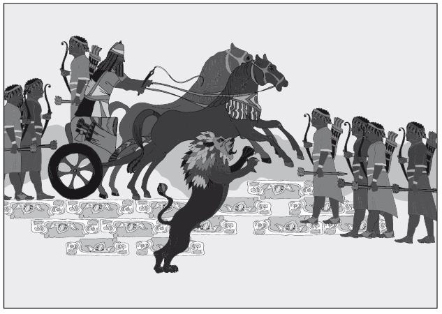 Ассирийский царь на колеснице и воины