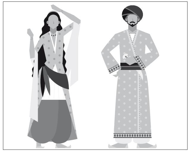 Следует упомянуть богато вышитую обувь, вышитое золотом покрывало и головной убор наподобие шапки.