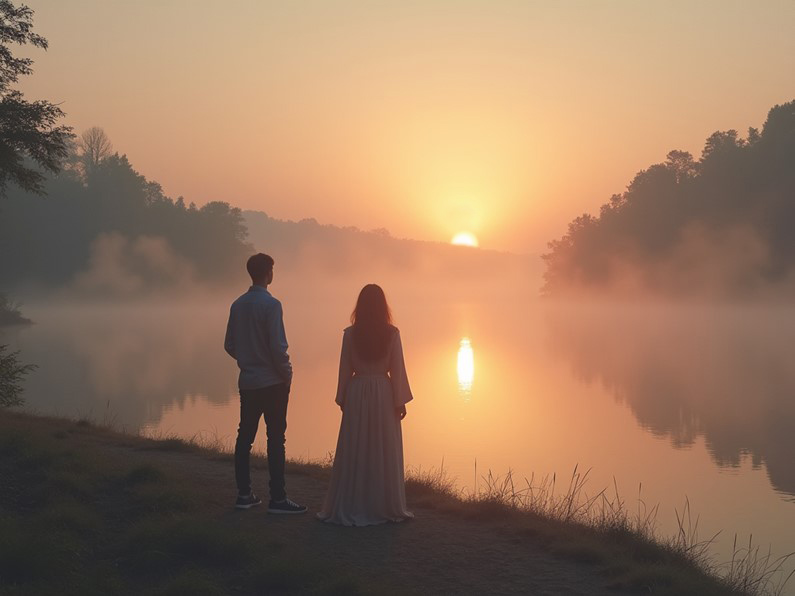 Она растворилась в утреннем воздухе так же беззвучно, как и появилась, оставив меня одного на берегу озера, где рассвет уже расцвечивал небосвод всеми оттенками розового и золотого. Только её слова продолжали звучать в моём сознании, подобно отголоску далёкого эха: "Просто открой глаза. И шагни."