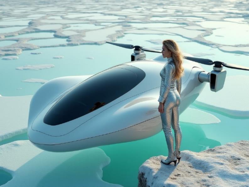 Я заметил её силуэт на высоком берегу – одинокую фигуру, что казалась соткана из лунного света и зимних теней. Она стояла неподвижно, будто часть этого величественного пейзажа, устремив взгляд на восток, туда, где вскоре должно было пробудиться зимнее солнце. Я не стал таиться, заметив её издалека. Вместо этого я мягким движением направил луч прожектора своего мультиротора на ледяную гладь. Свет прорезал предрассветные сумерки и упал у её ног, превратив россыпь снежных кристаллов в созвездие земных звёзд, на миг соединив небо и землю в единое целое.