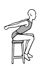 Сядьте прямо, руки сцеплены за спиной. Сосредоточьте свои мысли на позвоночнике. Начинайте поднятие с копчика. Физический подъем подкрепите мысленным. Вообразите кошку, поднимающую хвост. Прогнитесь в пояснице и мысленно представьте себе, что крестец принимает чуть ли не горизонтальное положение. Только так могут легко подняться поясничные, грудные и шейные позвонки, поскольку исчезнет их выгнутое назад кривое положение, напоминающее укладку черепицы, и вместе с ним сопутствующее ему огромное мышечное напряжение в спине.