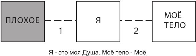 Первая связь (1) между мной и плохим. Вторая связь (2) между мной и моим телом. Обе можно освободить, если я захочу этого по-настоящему.