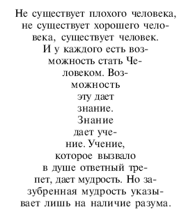 Человек должен отдавать себе отчет в своем поступке. Все, что я делаю другому, я получаю обратно вдвойне: делаю хорошее – получаю обратно вдвойне, делаю плохое – получаю обратно вдвойне. То, что человек, сделав плохое, падая, ломает кость, означает маленькое наказание за маленькое преступление. Ему еще повезло, что наказание последовало сразу. За большой грех расплата приходит позже, порой даже в будущей жизни. Кто жалуется на свою трудную судьбу, пусть подумает, что это есть искупление за грехи предыдущей жизни. Если человек по недомыслию совершает плохой поступок, придет наказание, а если делает это осознанно и преднамеренно, то последует большая кара. Особенно распространены в нынешнее время ругань, проклятия, злорадство, преступления. Наказание ждет своего часа.