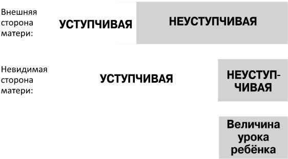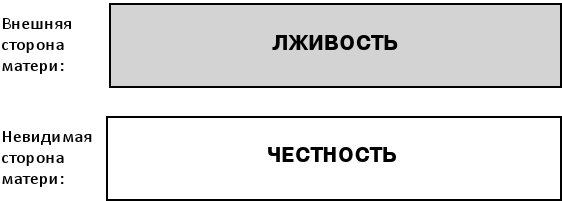 Третья мать внешне крайне лжива. Всё, что она говорит, оборачивается ложью. Невидимая сторона лживости – честность – может быть неведомой всем, даже ей самой. Она даже может ненавидеть себя за то, что всякий раз, приготовившись к честному разговору, она говорит прямо противоположное. Она не сознаёт, что ненавидит внешний глянец, поскольку чувствует за ним ложь, и её речь служит протестом против подобного двуличия. Она умеет лишь бороться с ложью, не понимая того, что борьба увеличивает лживость.