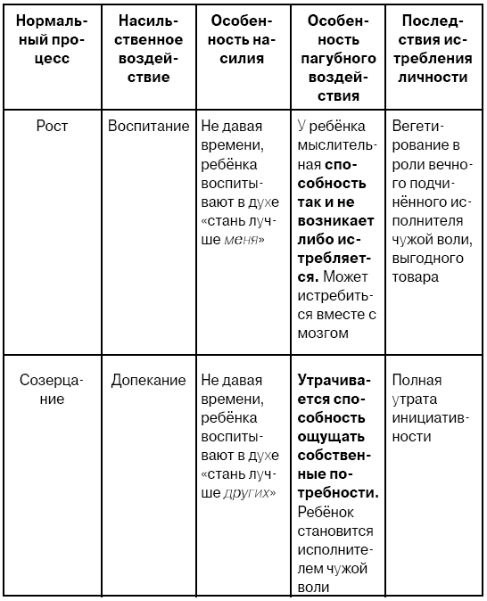 1. Людей из категории сущих детей немного, но их количество растет по мере роста благосостояния, поскольку общество всеобщего благоденствия прививает инфантильность. Чем меньше времени у родителей, тем больше они полагаются в воспитании детей на идеалы, которые вдалбливаются в голову ребенку для неукоснительного исполнения. Очень многие люди не считают это воспитанием. Они воспринимают себя Золушками, чьим воспитанием никто не занимался. Поэтому следует помнить, что всякие рассказы с «моралью», все мероприятия, несущие благородные идеи, вся высокая литература служат воспитательным целям.