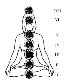 От главного энергетического канала, словно корни лотоса, ответвляются боковые каналы, которые открываются конусообразно на поверхность тел ауры. Их называют чакрами или энергетическими центрами. Они напоминают склады, в каждом хранится свойственная именно этой чакре энергия. Вся эта энергетика находится в постоянном движении. Чакры впитывают в себя универсальную энергию, разлагают ее компоненты и затем направляют по энергетическим каналам в нервную систему, в железы внутренней секреции и в кровь, чтобы питать тело.