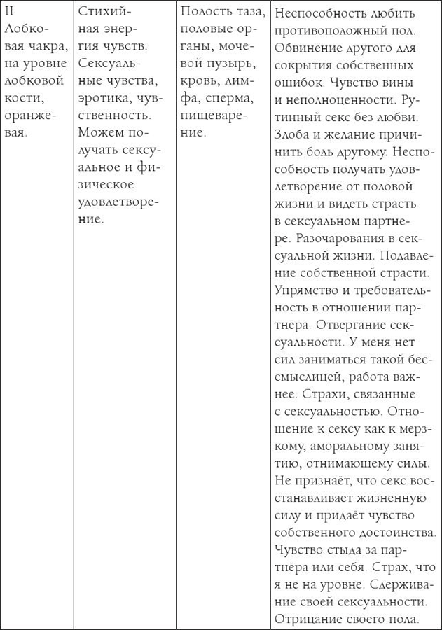 Приведённые на следующих таблицах данные собраны в ходе лечения жителей Эстонии. Проверьте, отвечает ли изложенное на таблицах Вашей болезни. Болезнь возникает тогда, когда чакра скована стрессом и происходит утечка энергии либо блокирован её приток.