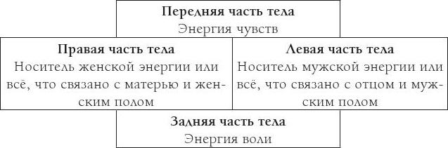 Отдельно следует выделить заднюю часть тела, или спину – сила воли, волевая энергия.