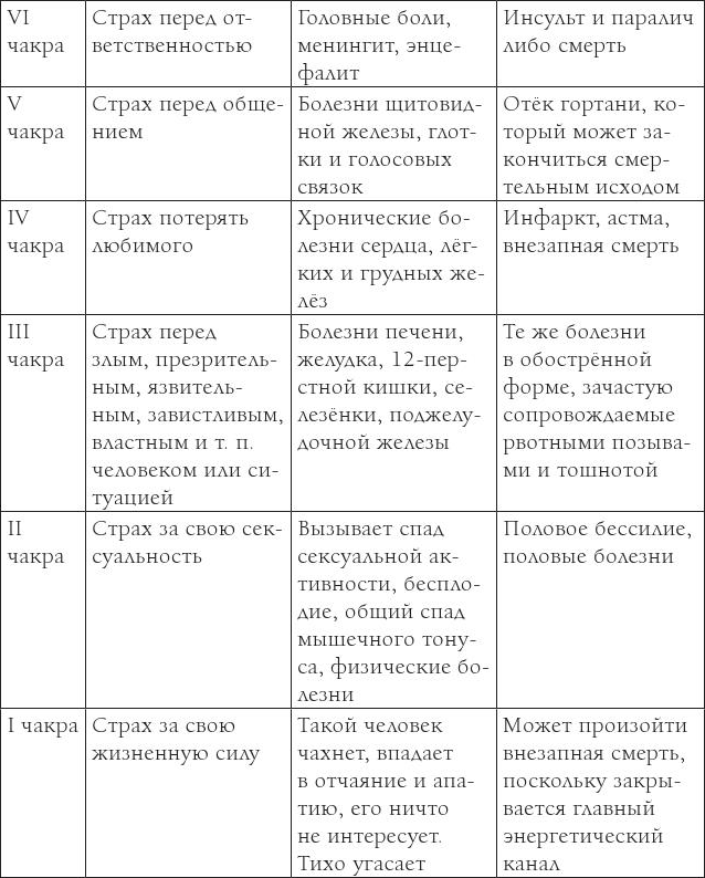 У каждого органа есть сознание. Когда пропадает воля, то орган отказывается работать. В зависимости от природы страха он поражает разные чакры и разные органы.