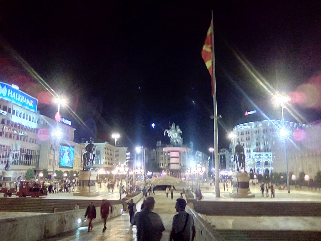 В грязном Куманово из автобуса вышла часть пассажиров, и к моменту приезда в Скопье салон был пуст уже наполовину. И вот мы в столице Македонии. Мало что было понятно на широких тёмных улицах Скопье, но вид из окна в целом был неплохой. И было интересно – новая для меня страна всё-таки, пусть даже и близкая по православной вере и духу (как я думал).