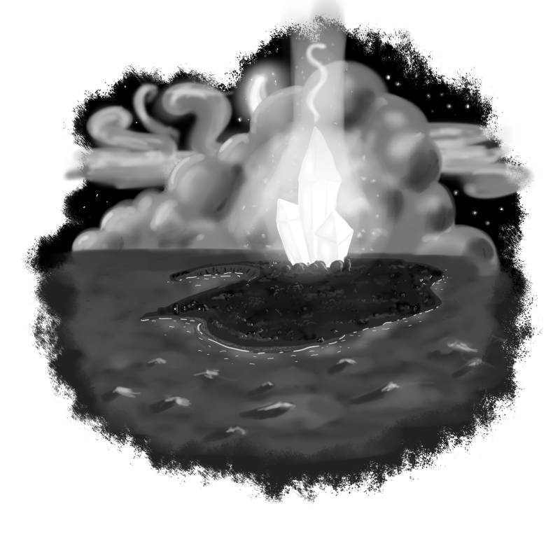 Меч дернулся сильнее, и. Эпи последовала за ним на улицу. Ураборос в своем зазеркальном обличии остался все тем же островом, заросшим джунглями. Посреди – океан, сверху – ночное небо. Только сейчас небо напоминало растрескавшуюся эмаль с глиняной вазы. Звезды – застывшие блики на многочисленных полупрозрачных гранях, луна – как огромный неотесанный булыжник янтаря. Смольно-черный океан обратился обсидиановым льдом, а немногочисленные домики исказило, как отражения на разбитом стекле. Однако тут оказалось светлее – сотни еле заметных граней поблескивали легким фиолетовым свечением, исходящим неизвестно откуда. Свет здесь лился отовсюду и, одновременно, его нигде не было.