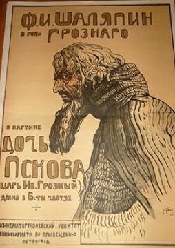 Спустя шесть лет на экран вышла драма «Царь Иван Васильевич Грозный» (1915) режиссера Александра Иванова-Гая. Вольная экранизация оперы Н.А. Римского-Корсакова «Псковитянка» должна была стать сенсацией, ведь в роли царя снялся сам Федор Шаляпин. Сюжет разворачивался во времена опричнины65. Иван Грозный шел походом на Псков, чтобы громить изменников. Там он случайно узнавал о незаконнорожденной дочери. Московский царь представал в фильме человеком жестоким, но не безнадежным, способным грешить, но при этом каяться и страдать.
